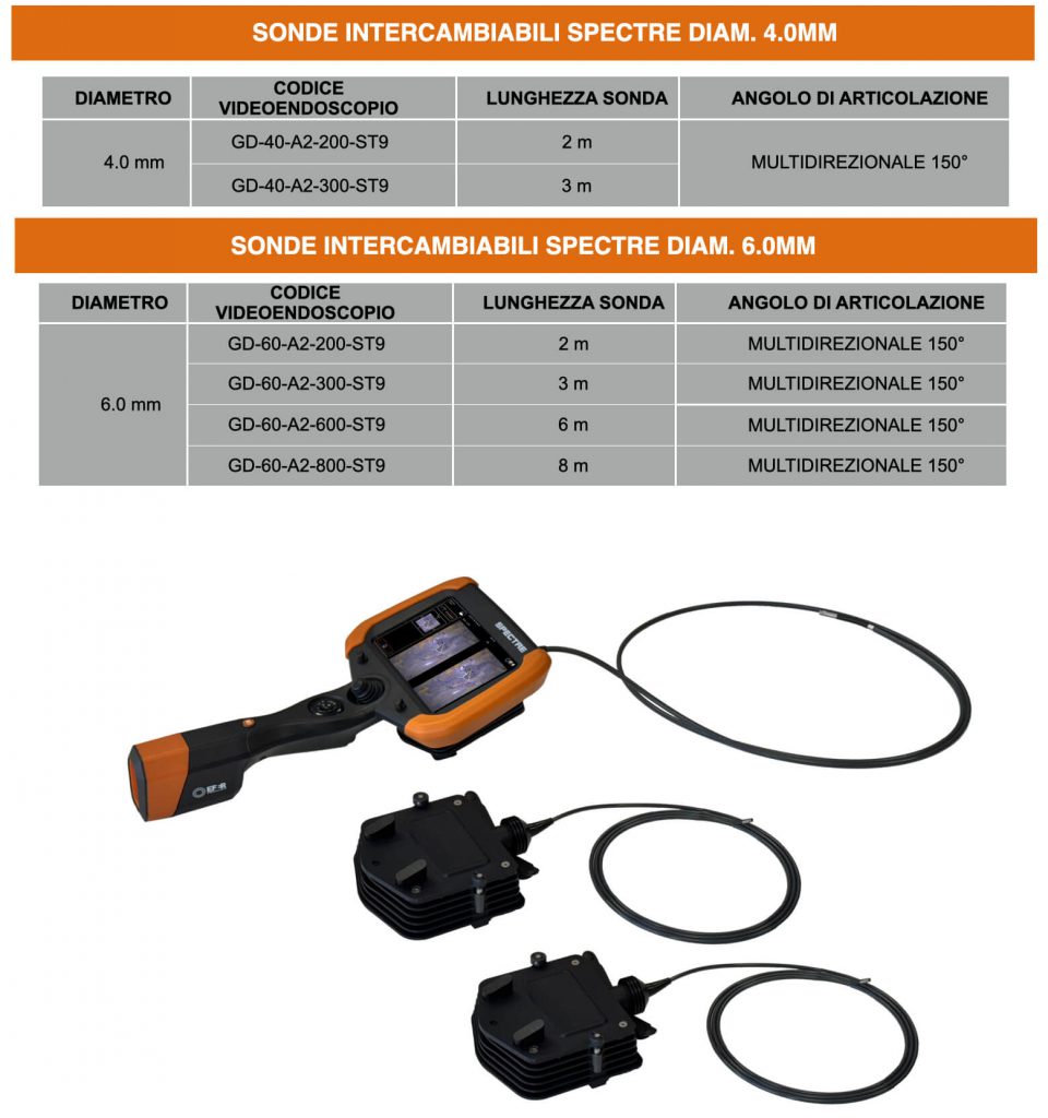 I Videoendoscopi portatili “SPECTRE” con sonde intercambiabili e con controllo dell’articolazione tramite joystick elettronico, sotto dotati di un software tecnologicamente avanzato, che consente la misurazione tridimensionale dei difetti con un’ineguagliabile precisione.
